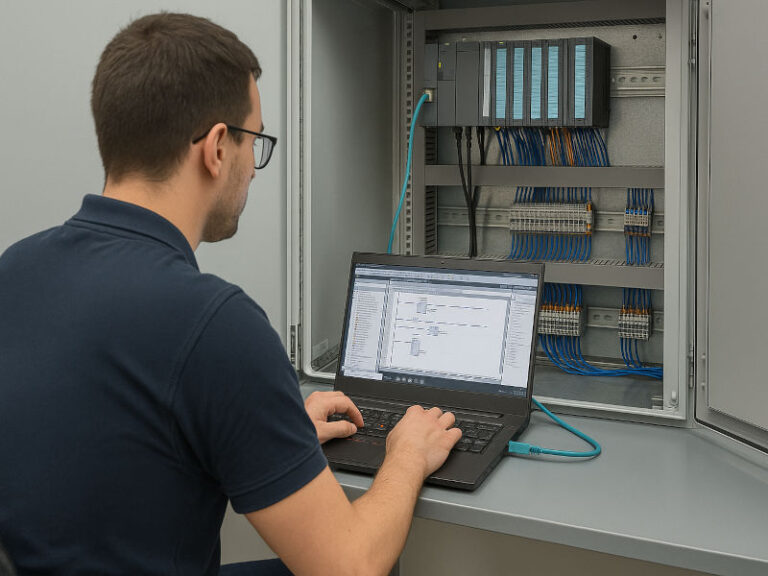 Nuestro departamento de software está especializado en la programación de PLCs de última generación. Realizamos el desarrollo de pantallas HMI (Human Machine Interface) de cualquier fabricante y creamos sistemas SCADA (Supervisory Control and Data Acquisition) para todo tipo de procesos industriales. Además, integramos soluciones de automatización que incluyen comunicaciones industriales, robótica y sistemas de supervisión que permiten controlar y optimizar la producción en tiempo real, garantizando fiabilidad, trazabilidad y eficiencia.